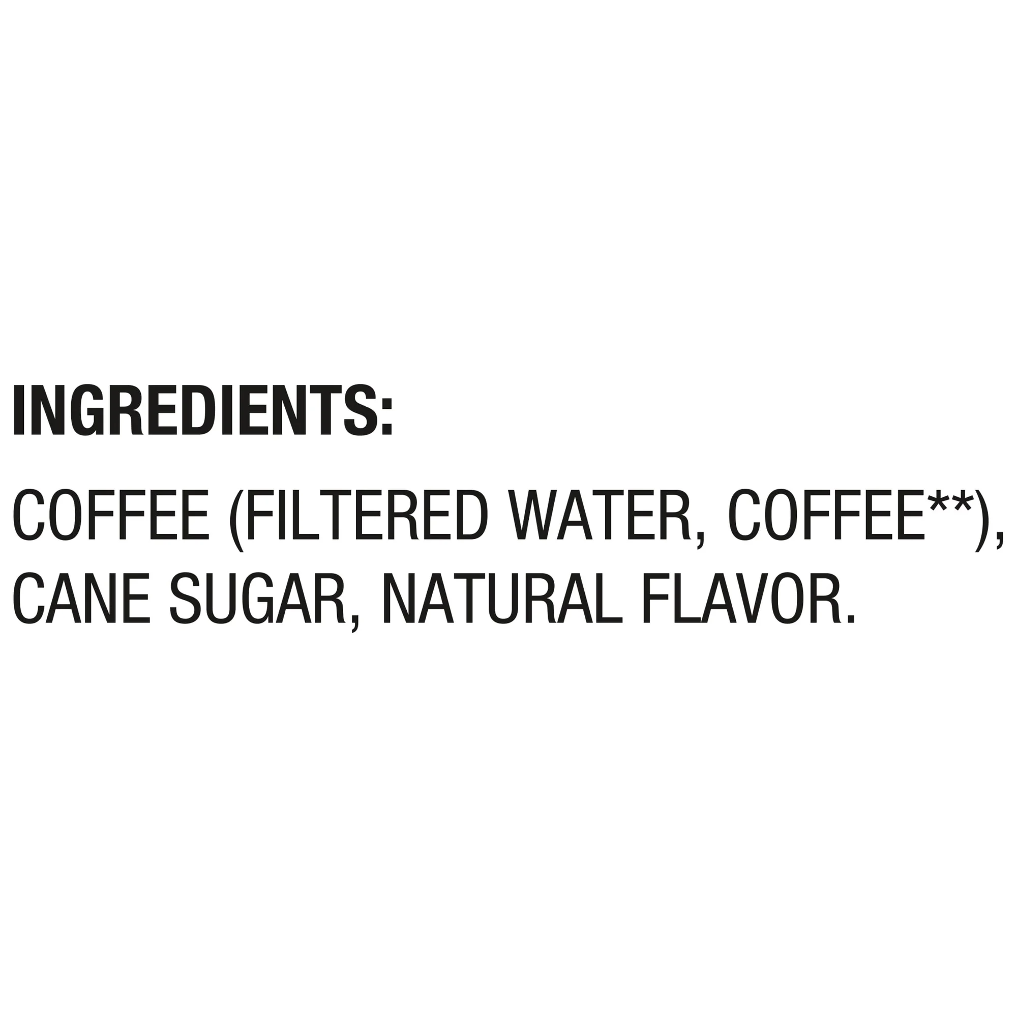 Coffee (Filtered Water, Coffee*), Cane Sugar, Natural Flavor. * Rainforest Alliance Certified. Find Out More at ra.org.